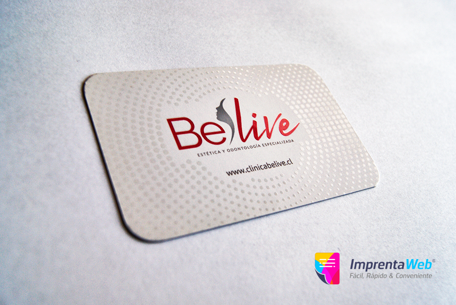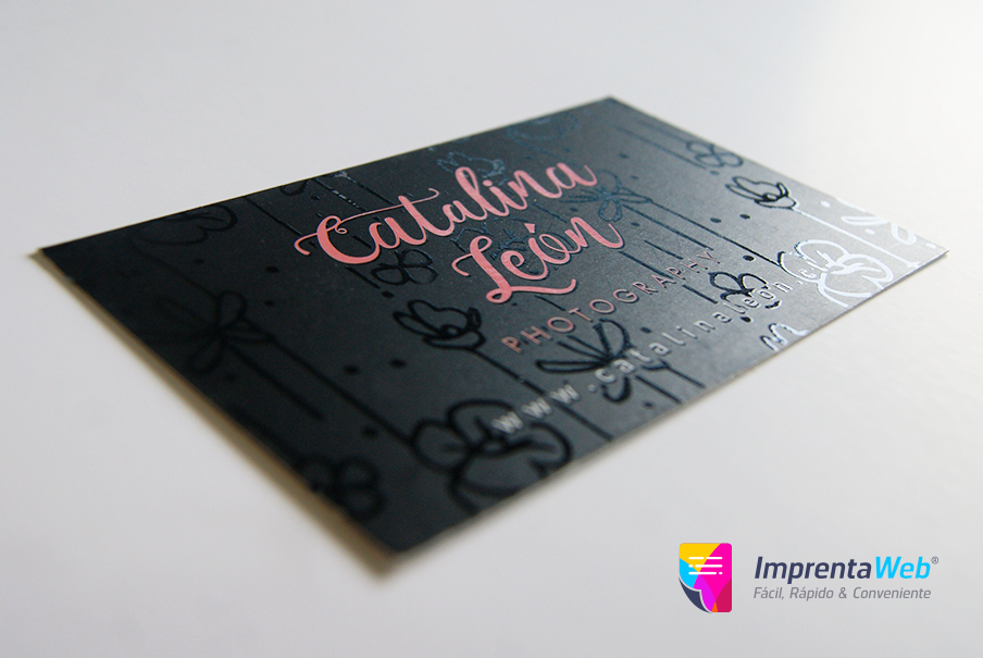 Para la terminación de Barniz Sectorizado no se recomienda aplicar directamente el barniz en logos o textos, ya que ocasionalmente ocurren descalces mínimos entre la impresión y el barniz, recomendamos aplicar patrones o figuras en el fondo de la tarjeta, como los ejemplos que aparecen en nuestras fotografías.